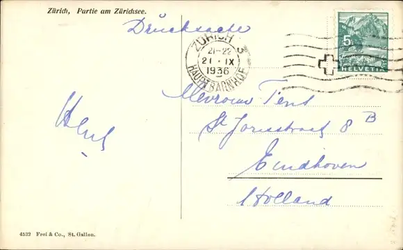 Zustand, siehe Scan, gelaufen, 1936 - ca 9 cm X 14 cm