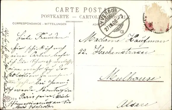Zustand, siehe Scan, gelaufen, 1906 - ca 14 cm X 9 cm