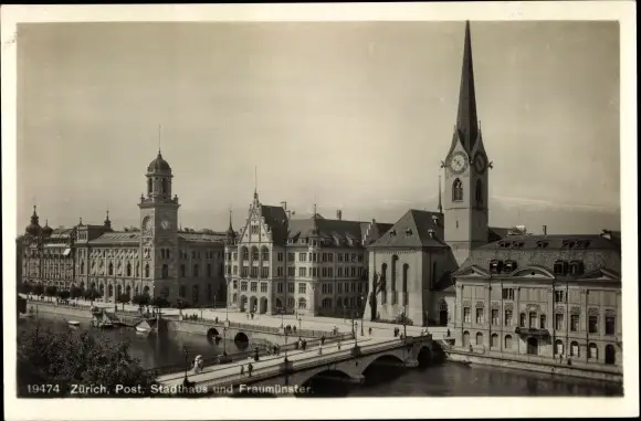 Ak Zürich Stadt Schweiz, Post, Stadthaus, Fraumünster