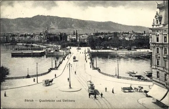 Ak Zürich Stadt Schweiz, Quaibrücke, Uetliberg