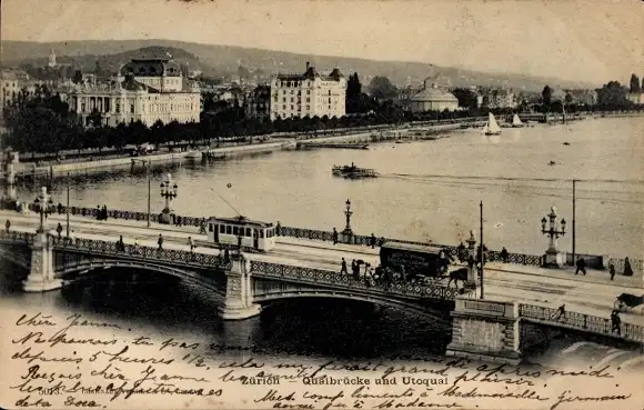 Ak Zürich Stadt Schweiz, Quaibrücke, Utoquai