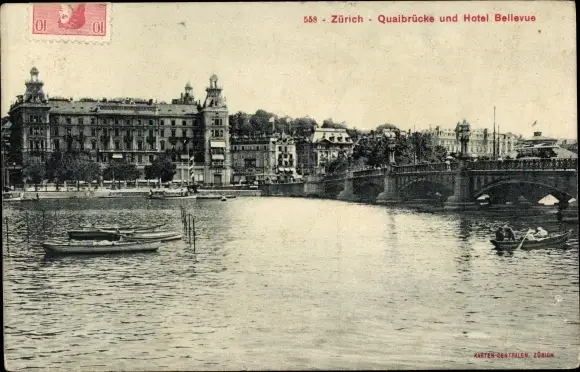 Ak Zürich Stadt Schweiz, Quaibrücke und Hotel Bellevue
