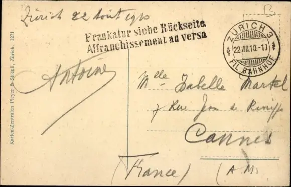 Zustand, siehe Scan, gelaufen, 1910 - ca 14 cm X 9 cm
