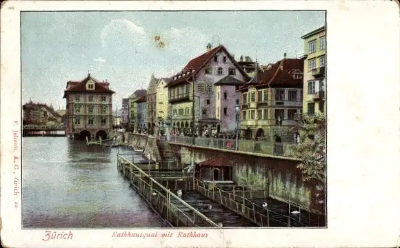 Ak Zürich Stadt Schweiz, Rathausquai, Rathaus