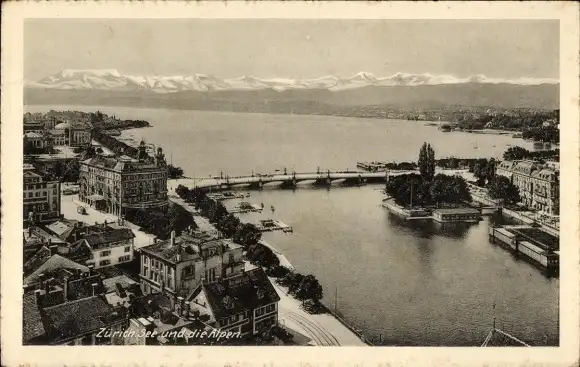Ak Zürich Stadt Schweiz, See, Alpen