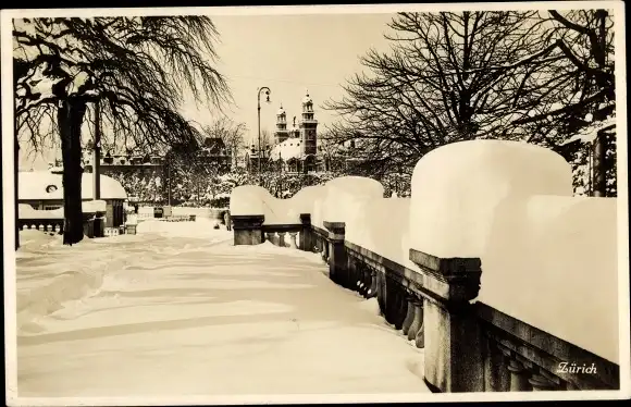 Ak Zürich Stadt Schweiz, Stadt im Schnee, Winteridyll