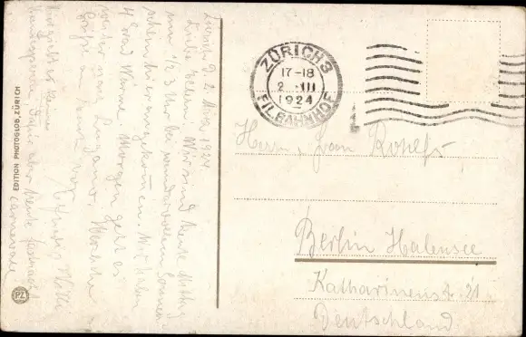 Zustand, siehe Scan, gelaufen, 1924 - ca 14 cm X 9 cm