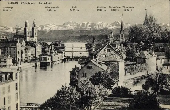 Ak Zürich Stadt Schweiz, Teilansicht der Stadt, Alpenpanorama