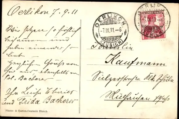 Zustand, siehe Scan, gelaufen, 1911 - ca 14 cm X 9 cm