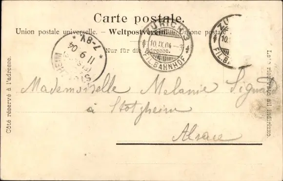 Zustand, siehe Scan, gelaufen, 1904 - ca 14 cm X 9 cm