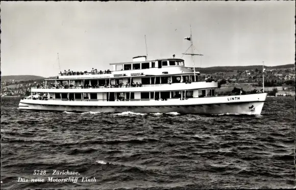 Ak Zürichsee Schweiz, das neue Motorschiff Linth