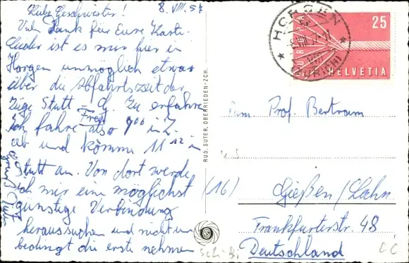 Zustand, siehe Scan, gelaufen, 1957 - ca 14 cm X 9 cm