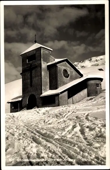 Ak Zürs Vorarlberg, Christkönigskirche im Winter