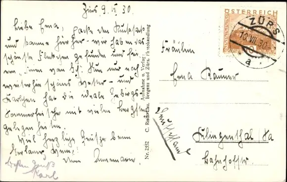 Zustand, siehe Scan, gelaufen, 1930 - ca 14 cm X 9 cm