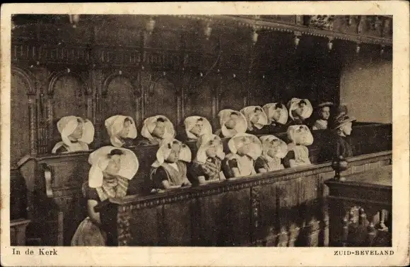 Ak Zuid-Beveland, Kirche, Inneres, Frauen in Tracht