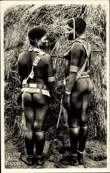 Ak Zulu Frauen mit Lendenschurz, Busen, Po