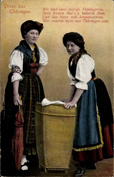 Ak Zwei Frauen in Thüringer Tracht, Korb