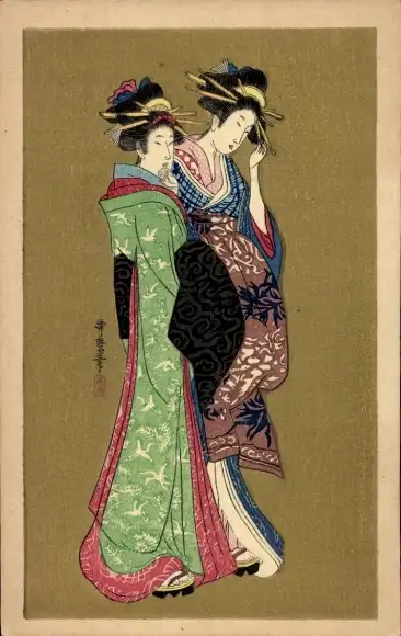 Ak Zwei Frauen in japanischen Trachten, Gemaltes Porträt