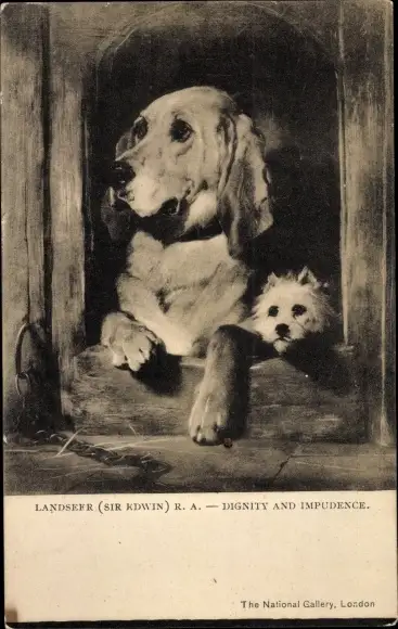 Ak Zwei Hunde in der Hundehütte, Landseer, Diginity and Impudence