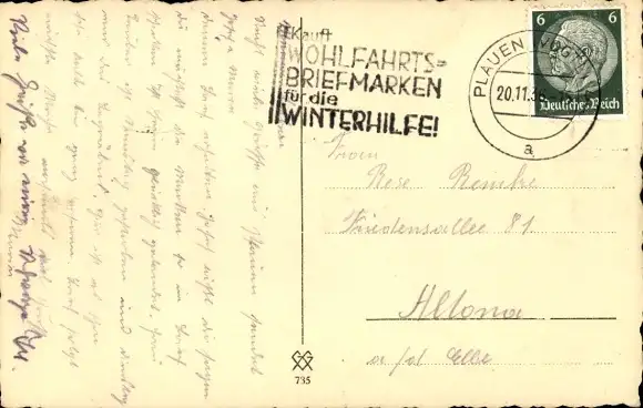 Zustand siehe Scan, gelaufen, 1936 - ca 14 cm X 9 cm