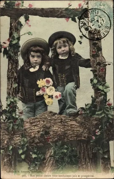 Ak Zwei Jungen in bretonischen Trachten