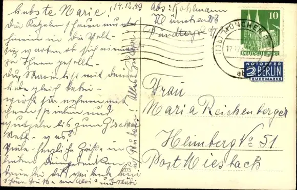 Zustand, siehe Scan, gelaufen, 1949 - ca 14 cm X 9 cm