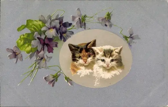 Ak Zwei Katzen, Tierportrait, Veilchen