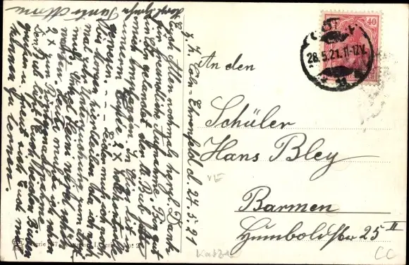 Zustand, siehe Scan, gelaufen, 1921 - ca 14 cm X 9 cm