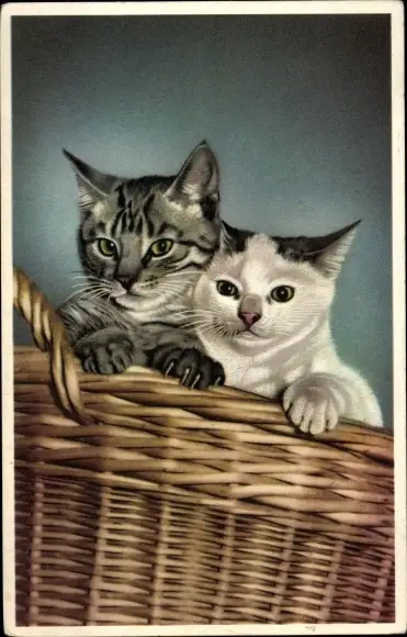 Ak Zwei Katzenbabys, Korb, Portrait