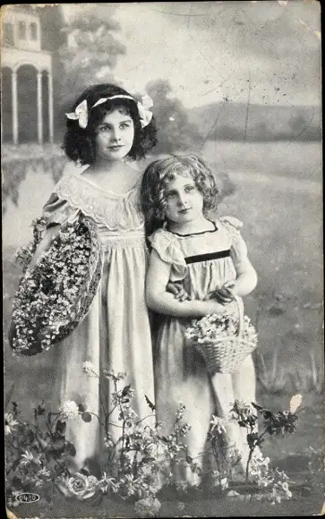 Ak Zwei Kinder mit Blumenkörben auf einer Wiese