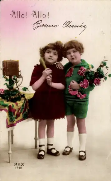 Ak Zwei Kinder mit Telefon