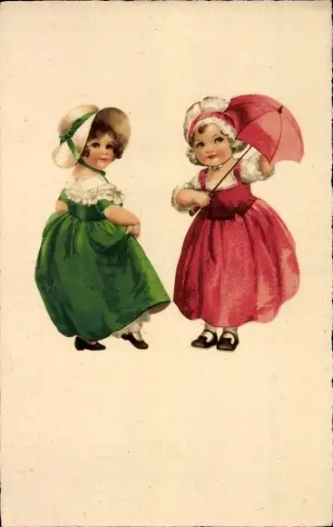 Ak Zwei Mädchen, Porträt, Sonnenschirm, Hut