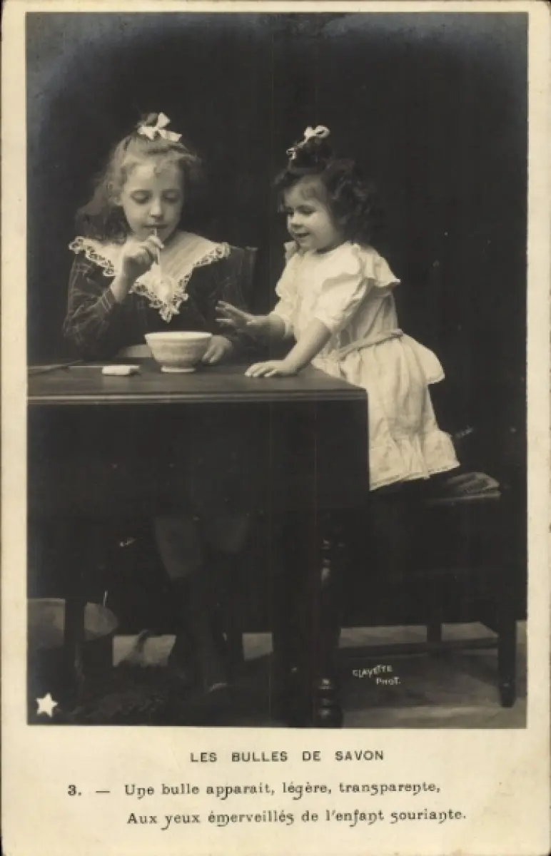 Ak Zwei Mädchen machen Seifenblasen, Tisch, Tasse