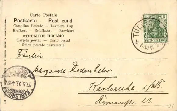 Zustand, siehe Scan, gelaufen, 1903 - ca 14 cm X 9 cm