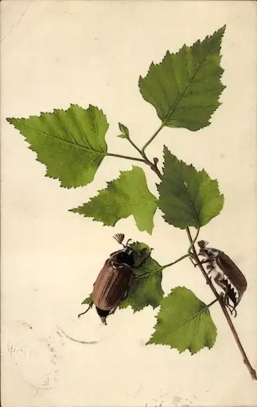 Ak Zwei Maikäfer auf einem Birkenast