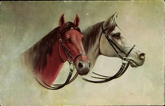 Ak Zwei Pferde, Kopfstudien, Zaumzeug