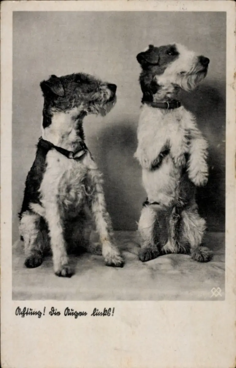Ak Zwei Terrier, Hunde, Achtung, Augen links