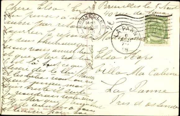 Zustand, siehe Scan, gelaufen, 1908 - ca 14 cm X 9 cm