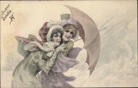 Ak Zwei junge Frauen mit Regenschirm, Munk