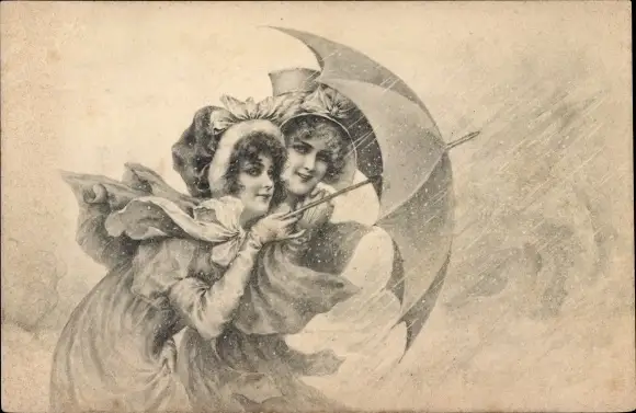 Ak Zwei junge Frauen mit Regenschirm, Munk