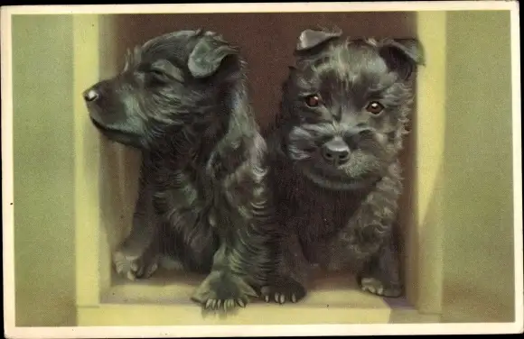Ak Zwei junge Hunde, Tier-Portrait, Schwarze Hunde