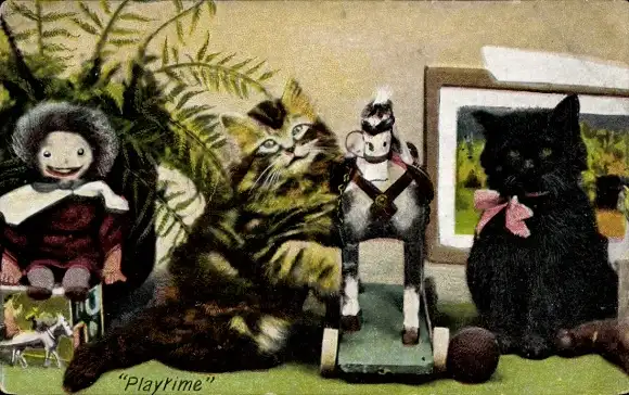 Ak Zwei junge Katzen, Hauskatzen, Spielzeuge
