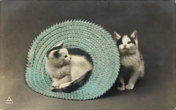Ak Zwei junge Katzen, Hut, Kätzchen
