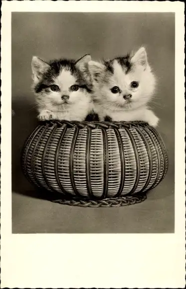 Ak Zwei junge Katzen in einem Korb, Amag 70681