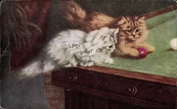 Ak Zwei kleine Katzen auf einem Billardtisch