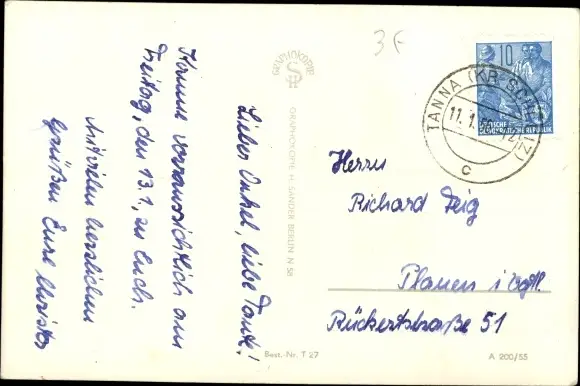 gelaufen 1956, Knickspuren links, sonst guter Zustand