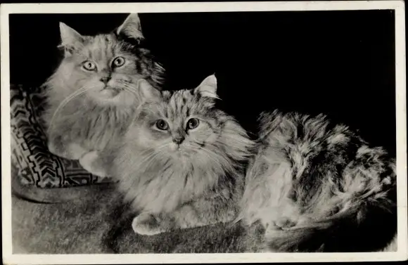 Ak Zwei langhaarige Katzen, Tierportrait, Amag 287