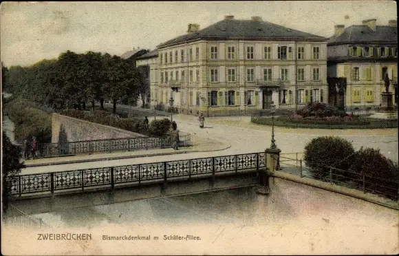 Ak Zweibrücken in der Pfalz, Bismarckdenkmal, Schiller Allee
