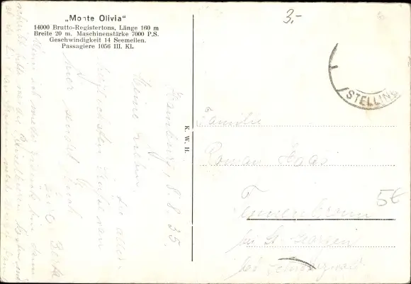 Ak Zweischrauben Motorschiff Monte Olivia, HSDG