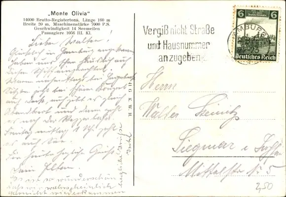 Ak Zweischrauben Motorschiff Monte Olivia, HSDG